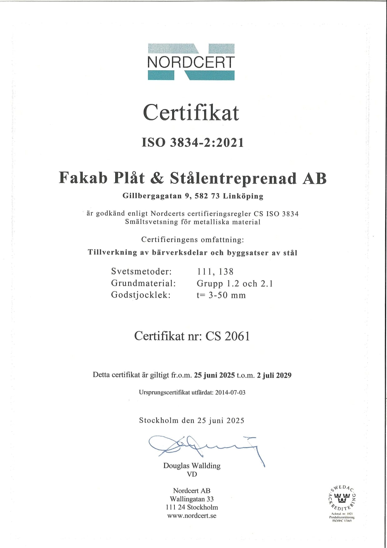 Vi är certifierade enligt EN 1090-1:2009+A1:2011 samt